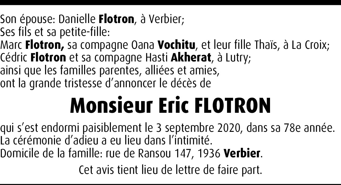 Vous tous dans le chagrin de la Séparation d'avec votre Éric bien-aimé. Nous vous adressons toute notre sympathie. Danielle je t'embrasse. Ta cousine