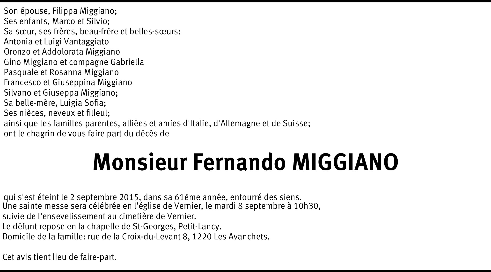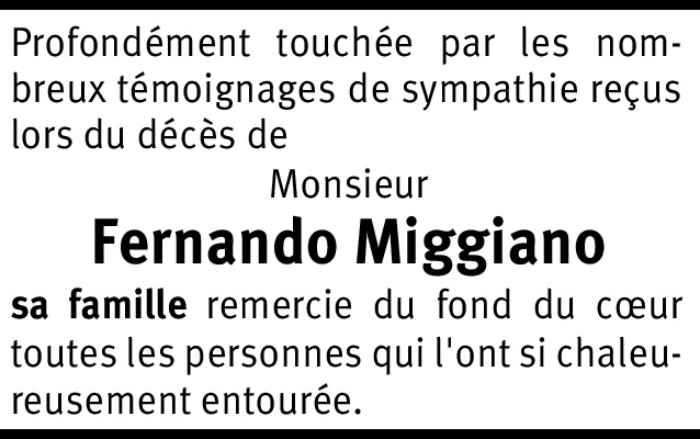 Il y a plus de 4 ans Signaler Nous vous prions d'accepter notre respectueuse sympathie. Nous savons combien ce malheur vous atteint et tenons à ce que vous sachiez toute la part que nous prenons à votre douleur. De la part de Gerardo-Luigi et Giuseppina Miggiano
