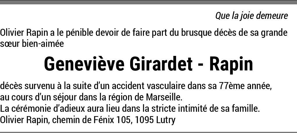 Ta riche personnalité m'a été bénéfique au CMS MERCI 04.04.2026 Signaler Je ne peux pas développer mon émotion. Repose en paix avec le respect que je t'accorde avec amitié Eric De la part de Eric Vaucher