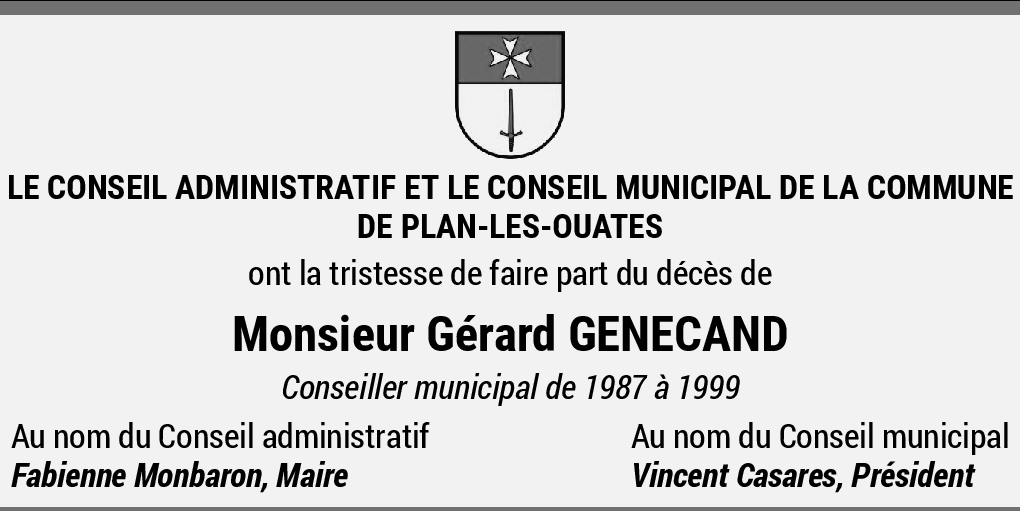 15.12.2025 Signaler Chère Françoise, chère famille, Je pense bien à vous suite au décès de Gérard, et vous présente mes condoléances. Robert Niestlé De la part de Niestlé