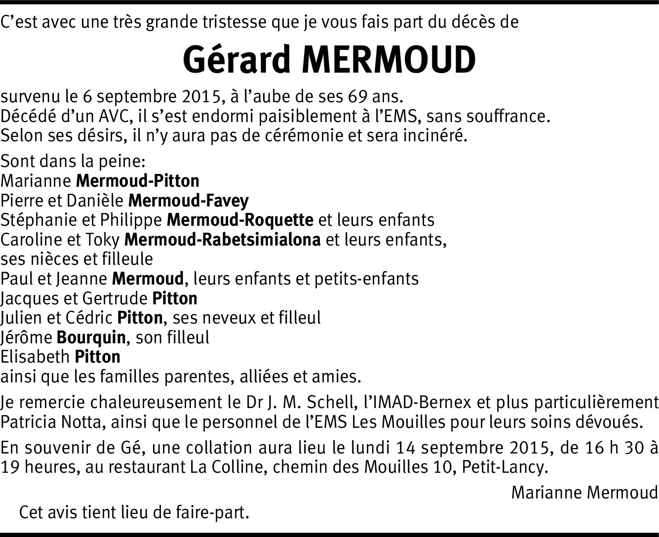 Il y a plus de 4 ans Signaler Chère Marianne, je suis de tout cœur avec toi en ce difficile moment qu'est la perte d'un être proche. Amitiés De la part de Yolande