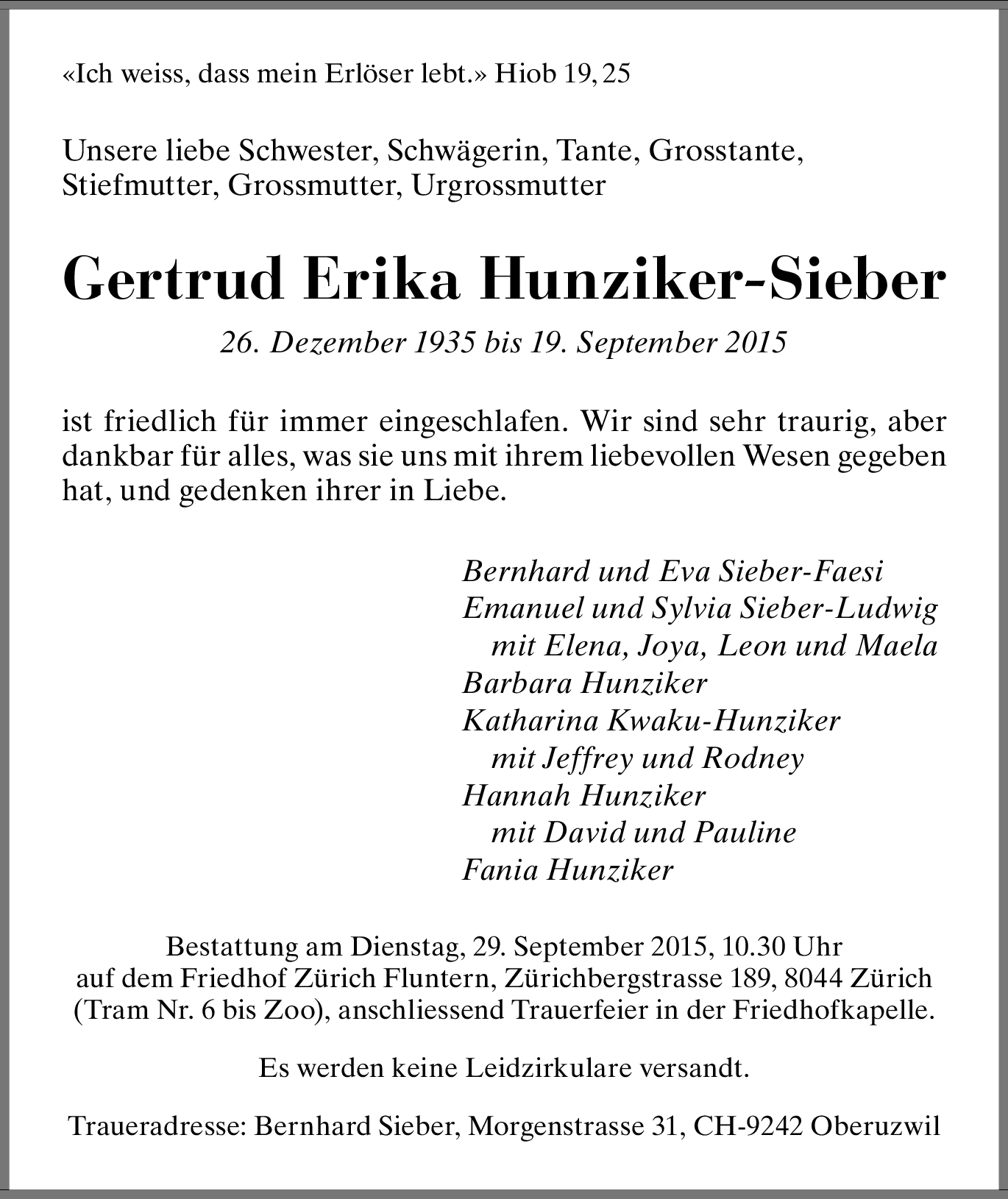 Gertrud Erika Hunziker-Sieber