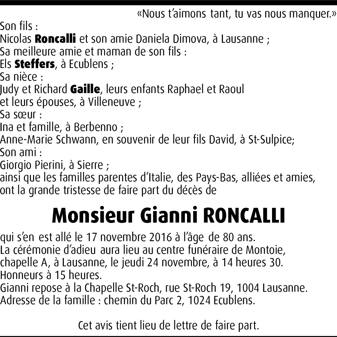 Dernière condoléances