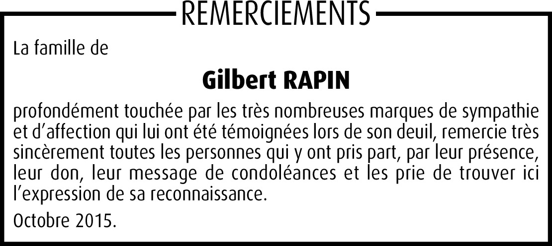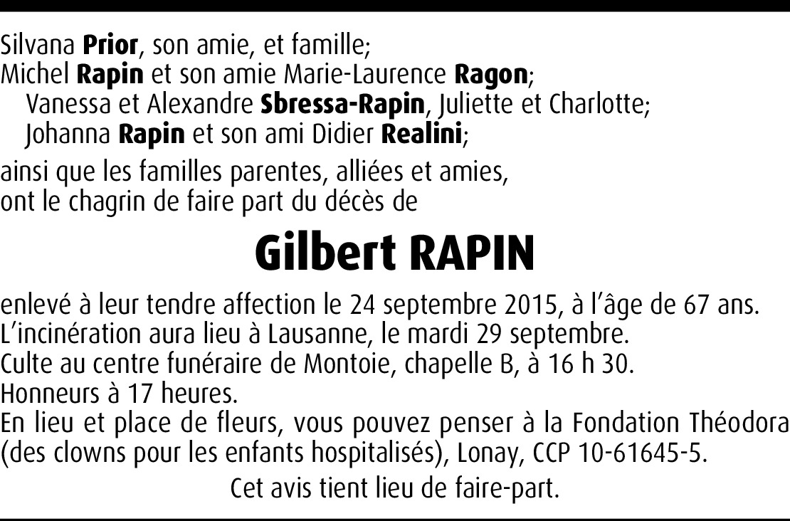 C'est avec une grande tristesse que j'ai appris le décès de Gilbert.