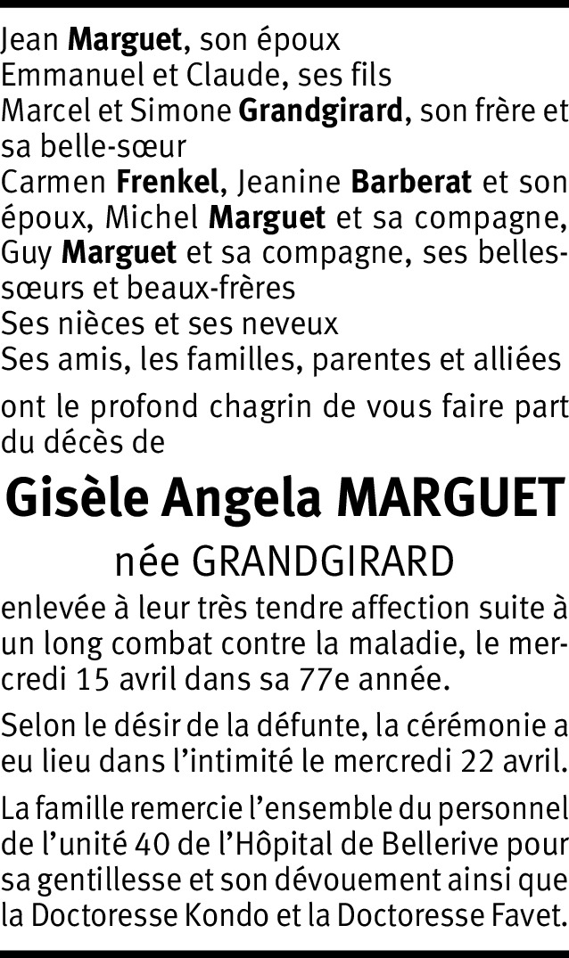 Gisèle Angela Marguet Grandgirard