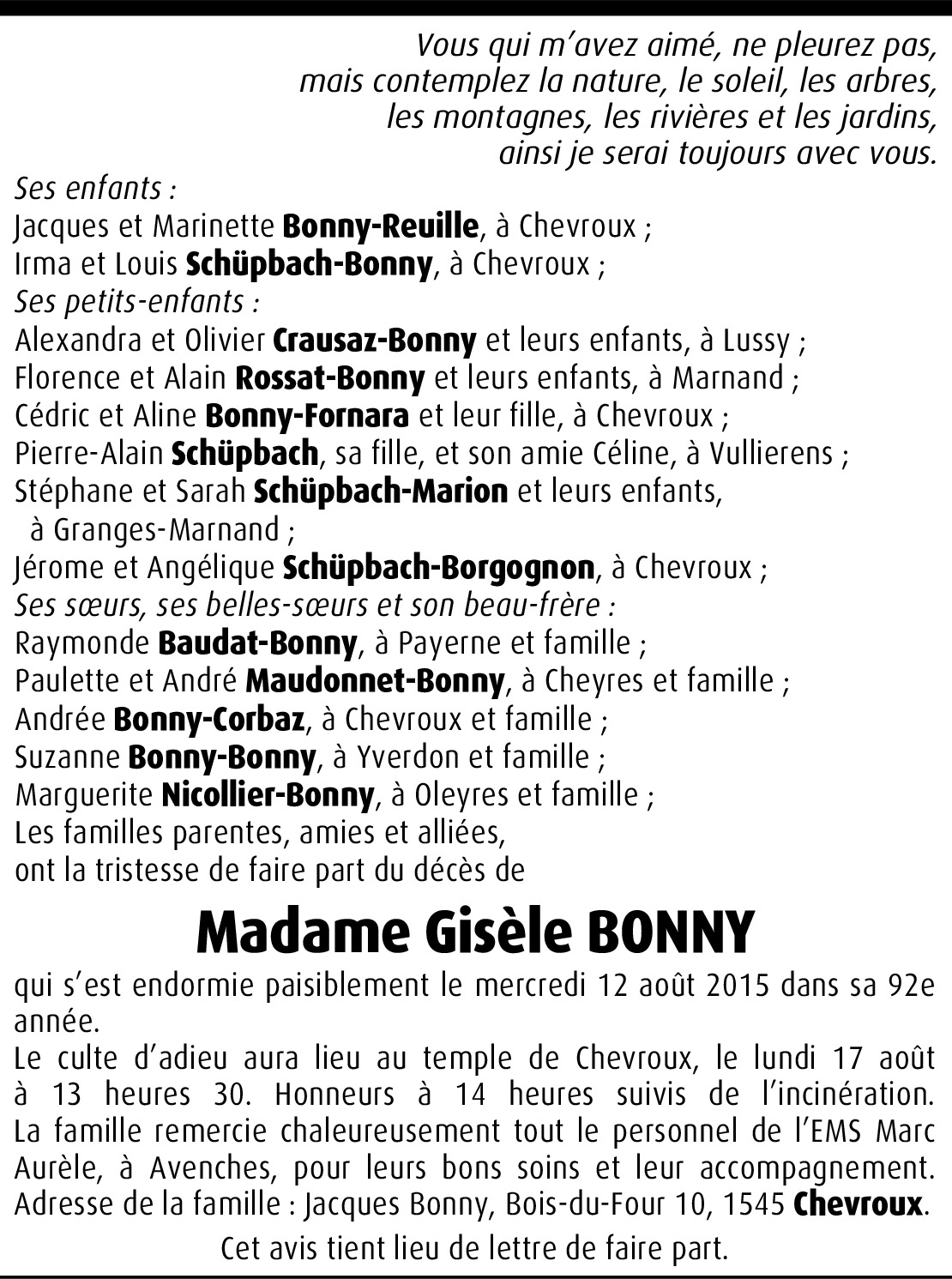 Vous souhaitez rester informé des nouveaux avis et condoléances pour ce défunt ?