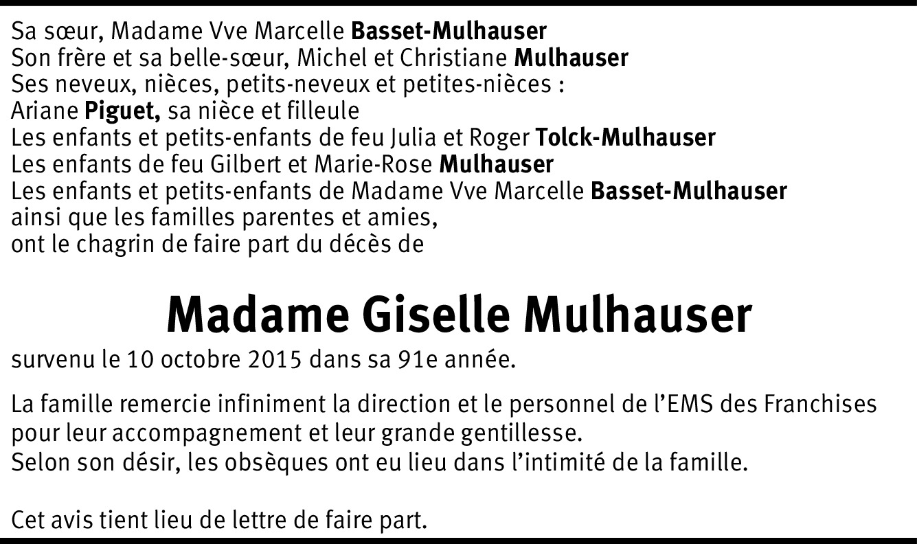 Elle s'en est allée notre amie Giselle. Et nous, ses voisins, ses amis, sa "vraie famille" - celle du coeur-, nous voulons dire qu'elle va nous manquer. Sa personnalité attachante restera inscrite dans nos mémoires et son sourire conservera sa place dans nos âmes.