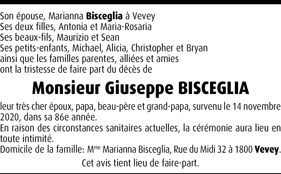Le sourire, la gentillesse, la politesse de Mr Bisceglia, resteront dans ma mémoire, une autre étoile est née là-haut, prenez soin de nous.