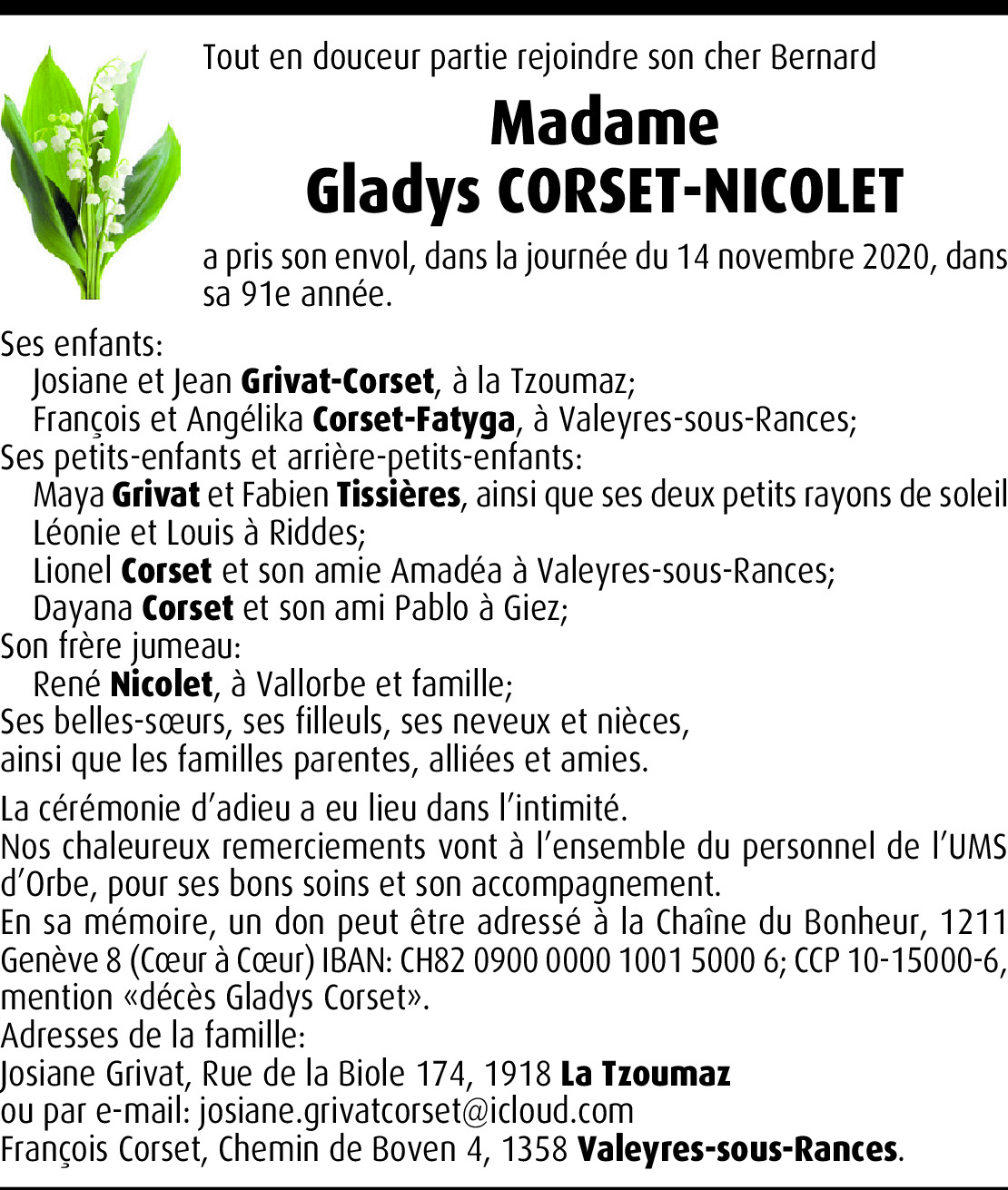 Il y a plus de 4 ans Report Sincères condoléances , la famille se joint à moi pour vous envoyer nos meilleures pensées... famille Richard Corset Penthaz De la part de Christiane Corset