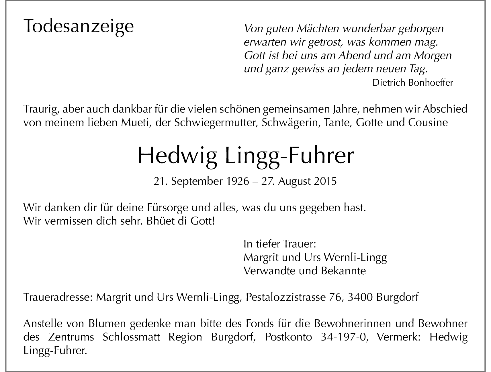 Hedwig Lingg-Fuhrer