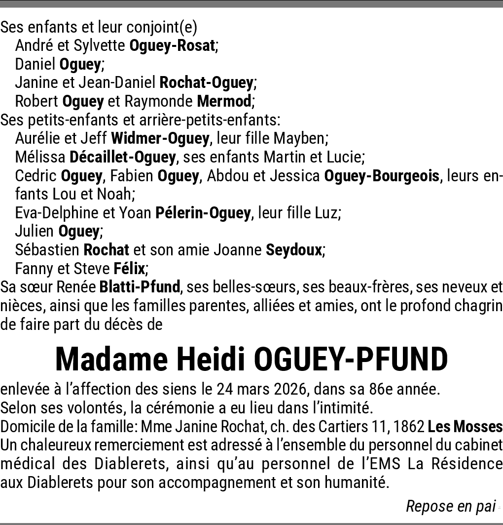 01.04.2026 Signaler En pensée avec vous lors de votre deuil veuillez recevoir toute notre sympathie famille François Perrod La Forclaz De la part de Perrod Francois