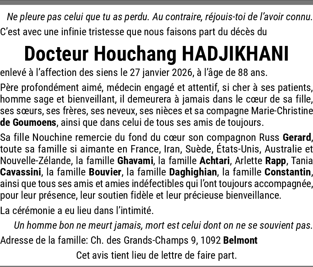 C'est avec tristesse que je lis le départ de votre papa, que toute ma famille a bien connu à Epalinges, dans mon enfance. Sa bienveillance, son humanité et sa gentillesse ont fait de lui un grand Homme.