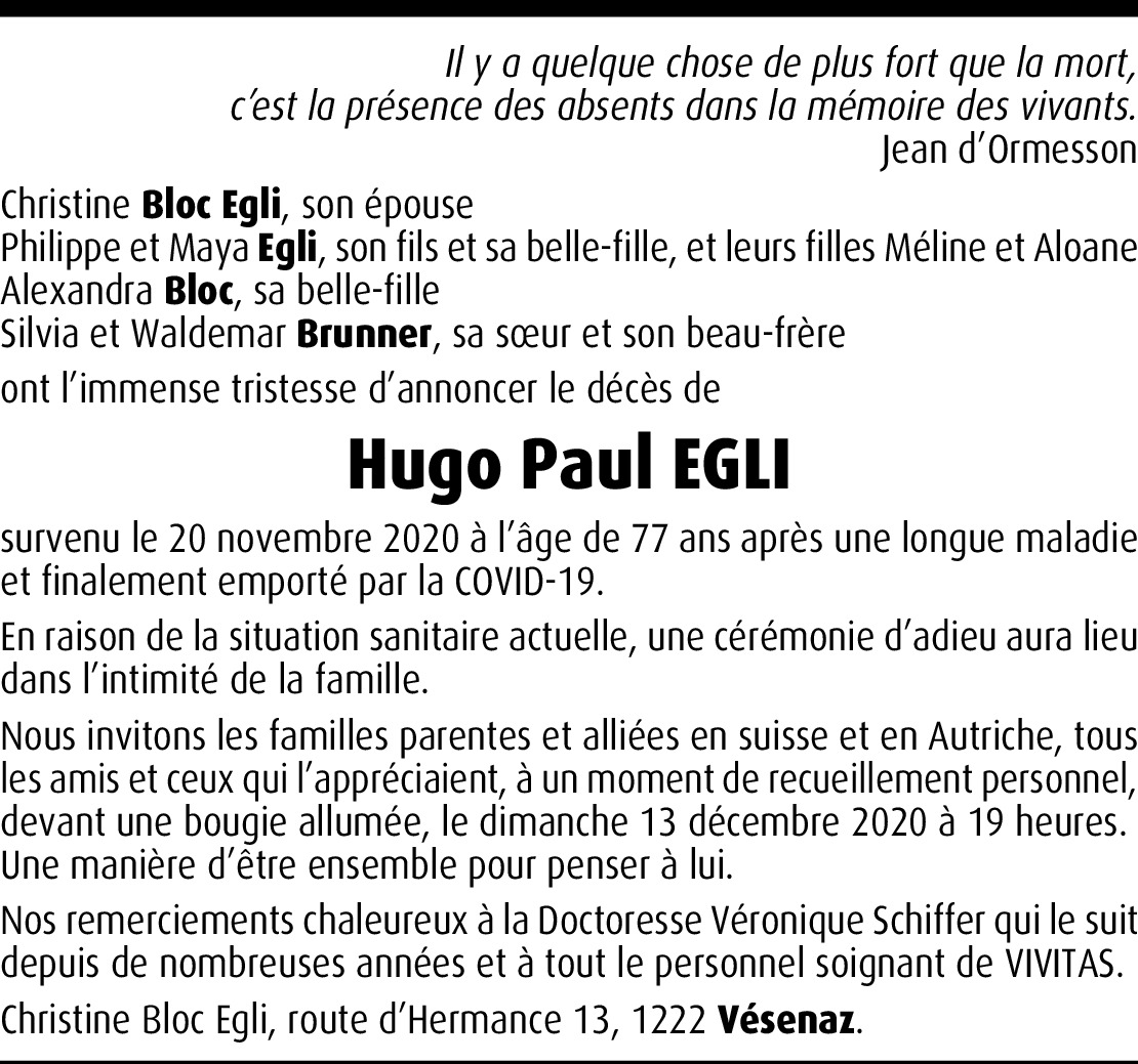 Cher Hugues, je serai présente en pensées le 13 décembre à 19h00 pour me sentir en lien avec toi et tous ceux qui te sont proches et dont je partage le chagrin aujourd’hui en ce 1er dimanche de l’Avent.