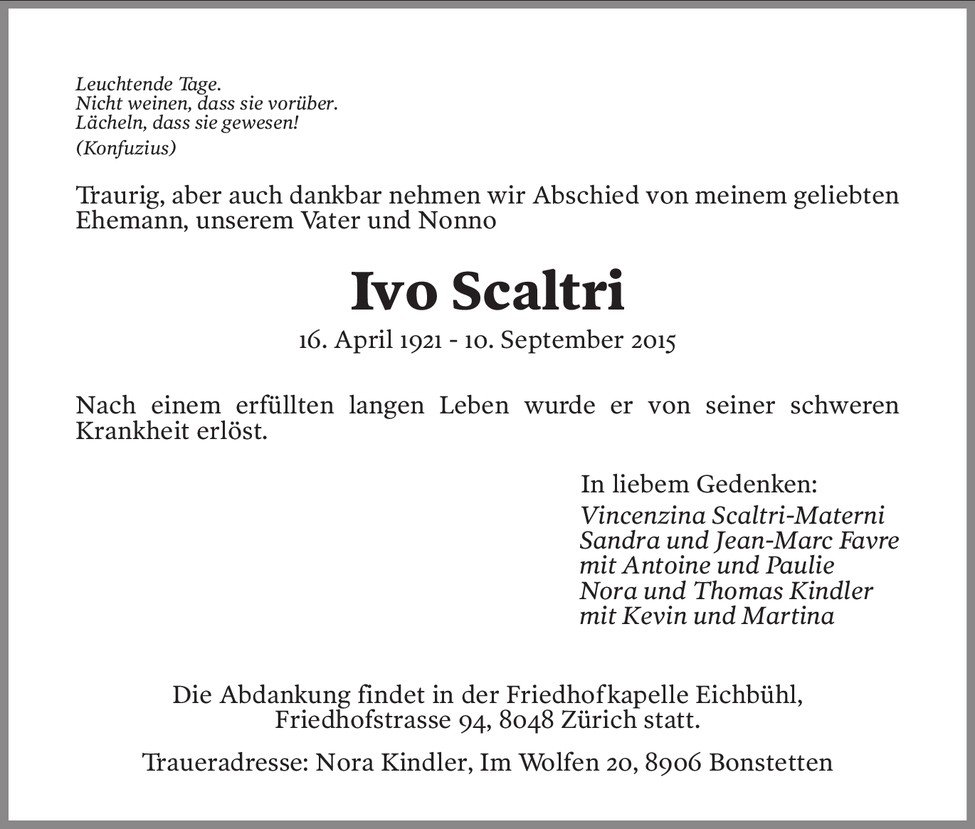 Dernière condoléances