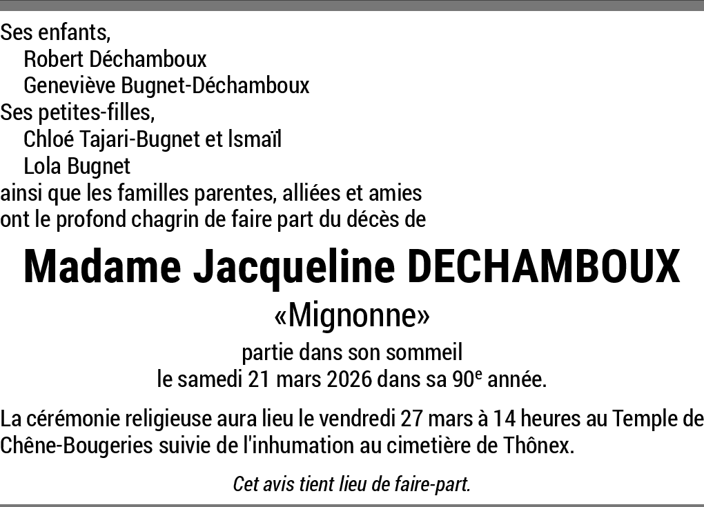 Sincères condoléances 24.03.2026 Signaler Geneviève. Perdre un être cher donne du chagrin mais lorsqu'il s'agit de sa mère, la douleur doit être encore plus forte. Par ces quelques mots je tiens à te présenter mes plus sincères condoléances. Philippe De la part de Philippe Graf