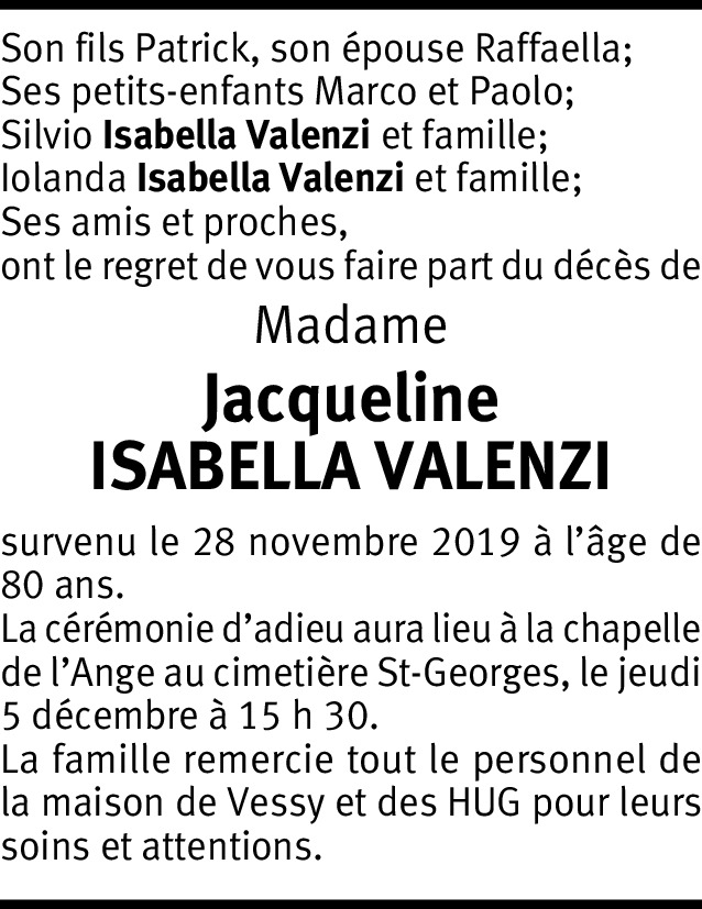 Jacqueline Isabella Valenzi