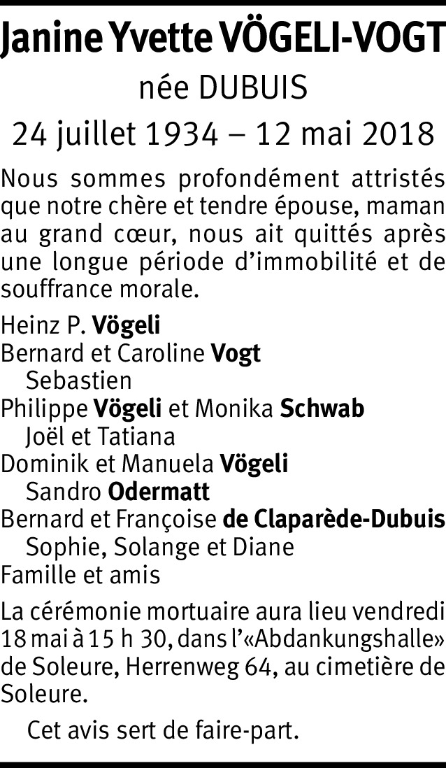 Janine Yvette VÖGELI-VOGT DUBUIS