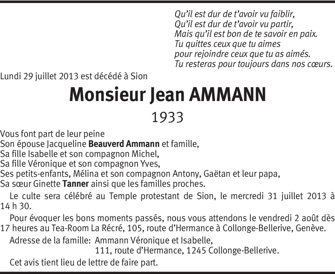 Il y a plus de 4 ans Signaler Chère Isabelle, en ces moments douloureux, je te présente mes sincères condoléances, ainsi qu'à ta famille et tes poches, courage, Pierre Pizzamiglio De la part de Pierre Pizzamiglio
