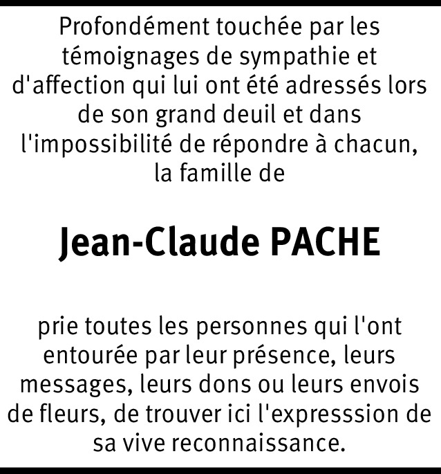 Il y a plus de 4 ans Signaler Il n'y a pas de mots pour exprimer à quel point nous sommes affligés par la dure perte que vous vivez. Nous espérons simplement que notre sympathie vous apportera un certain apaisement. De la part de Jean-Bernard Egger
