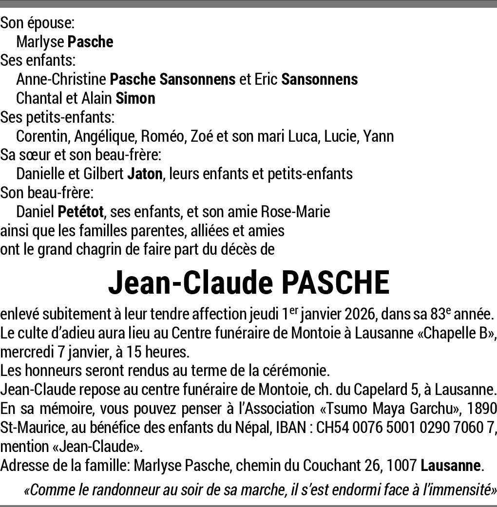 Chère famille Pache, vous Madame, ainsi que vos filles et toute la famille.