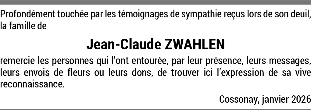 Sincères condoléances 06.01.2026 Signaler Nous vous prions de bien vouloir accepter nos très sincères condoléances. Nous nous associons à votre douleur et à celle de votre famille. De la part de Patrice et Françoise Weber