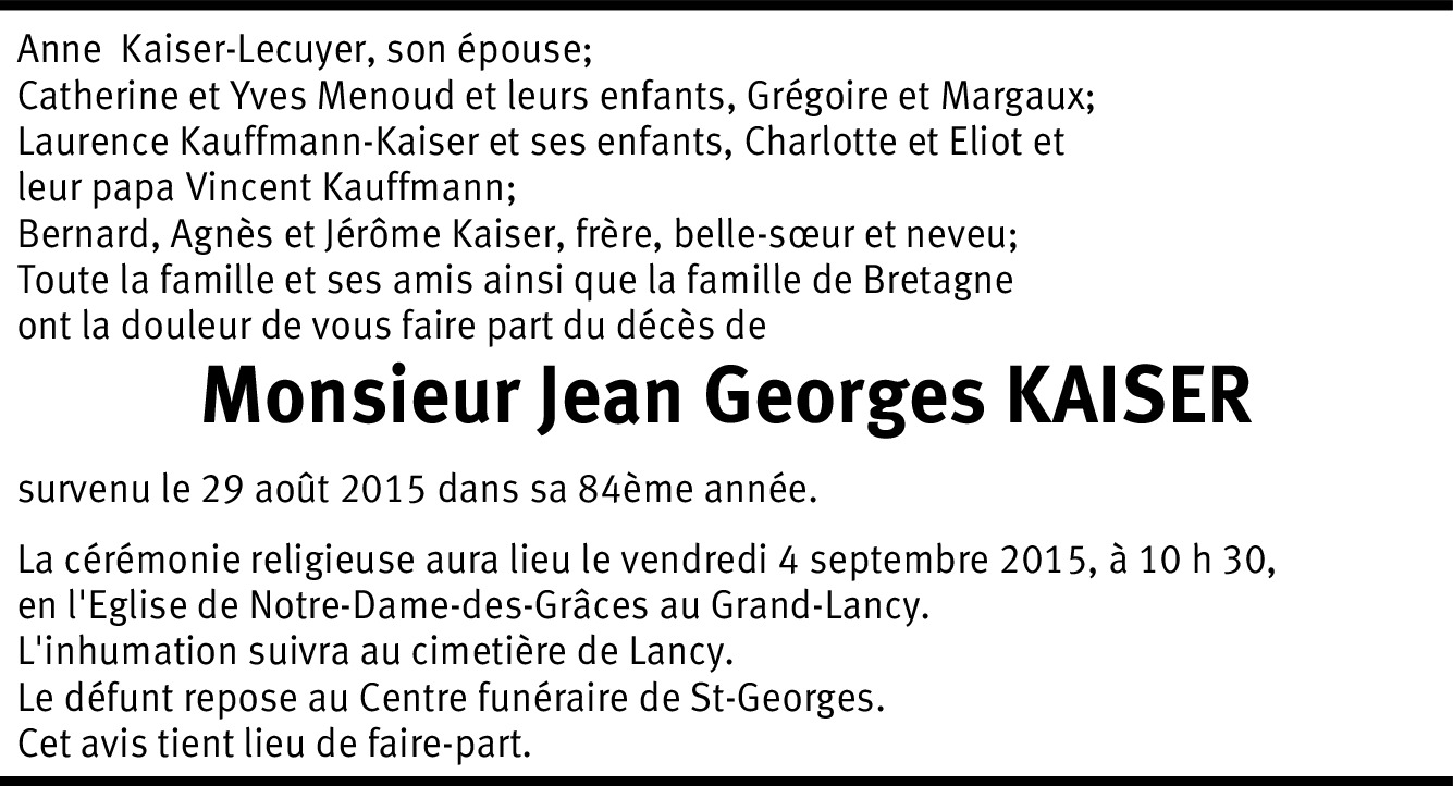 Il y a plus de 4 ans Signaler Chère Anne, chère famille, Je vous adresse mes plus sincères condoléances pour la perte de notre ami Jean-Georges. Bien en pensée avec vous en ces moments difficiles. Danielle Ryser. De la part de Danielle RYSER