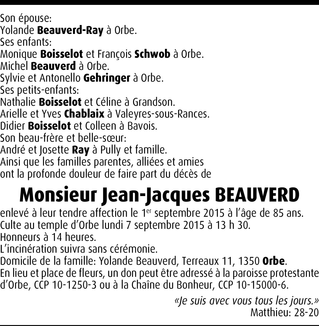 Lors de la perte d'un être cher, notre peine est immense. Dans ces moments de douleurs profondes, les gens se rassemblent pour soutenir ceux qui restent. La distance rend ma présence impossible, cependant, j'espère que cette pensée sincère de sympathie et de compréhension pourra vous être d'un certain réconfort. Mes plus sincères condoléances.