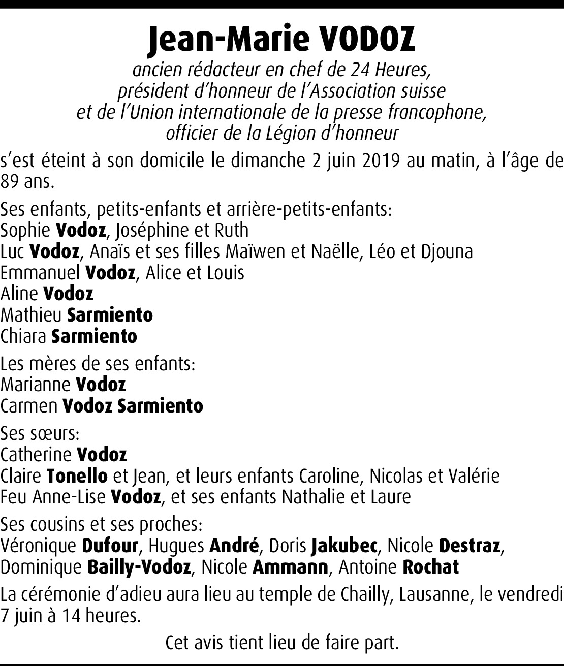 Celui qui fut l'un des meilleurs rédacteurs en chef de 24 HEURES était aussi un confrère très humain et courtois.