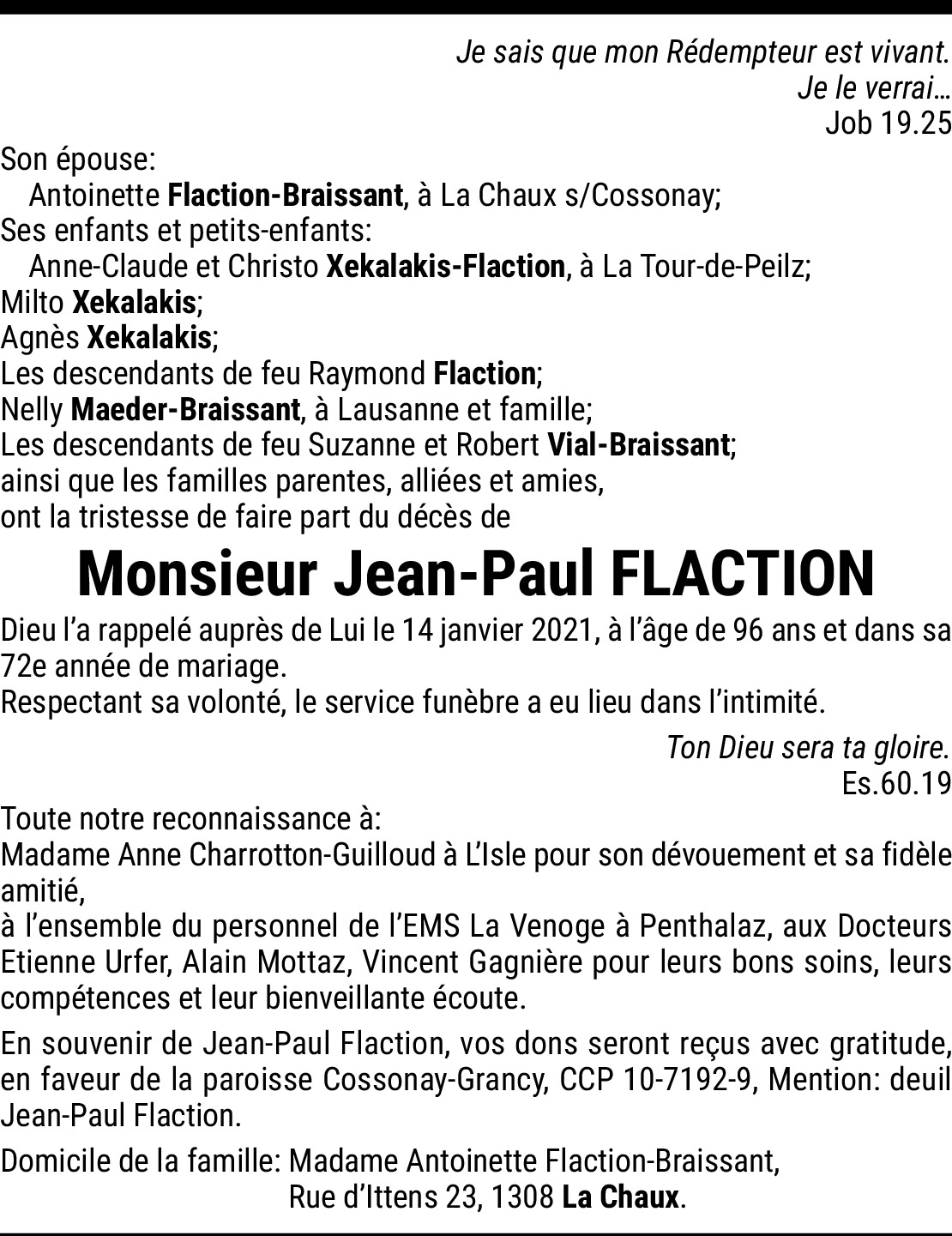 Monsieur Flaction était, comme son épouse l’est encore, un exemple de foi dans la paroisse.