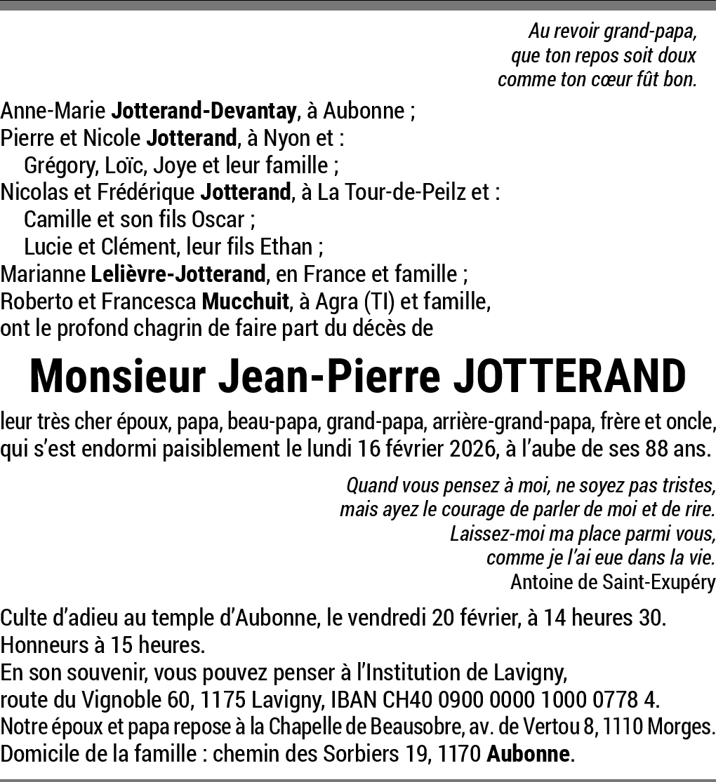 Vous souhaitez rester informé des nouveaux avis et condoléances pour ce défunt ?