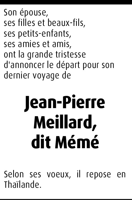 Il y a plus de 4 ans Signaler Au revoir papa, grand-papa, beau-papa. Tu restes dans nos pensées. Jess, Raphaël, Marc De la part de Marc Junod