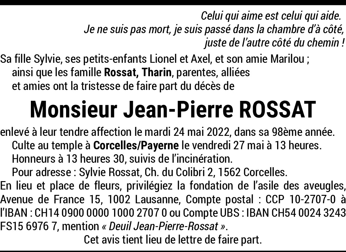 Au revoir Jean-Pierre. Je t'ai côtoyé musicalement parlant. Je garde de toi ta gentillesse, ta gaieté, ton humilité et ton plaisir de partager nos moments musicaux au Moulin à Poivre et ailleurs. Je te souhaite un bon voyage dans la Fanfare Céleste. Ton souvenir restera à jamais parmi d'autres musiciens qui ont eu le plaisir de te connaître.
