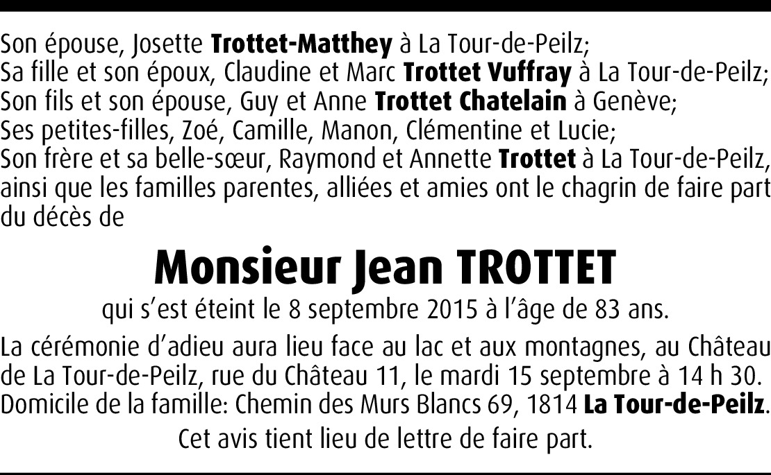 Nous sommes de tout coeur avec votre famille, et tout particulièrement avec Claudine et sa maman, pour lesquelles ces derniers mois ont dû être bien difficiles, et Zoé, si fière de son grand-père. Nous vous envoyons notre profonde sympathie.