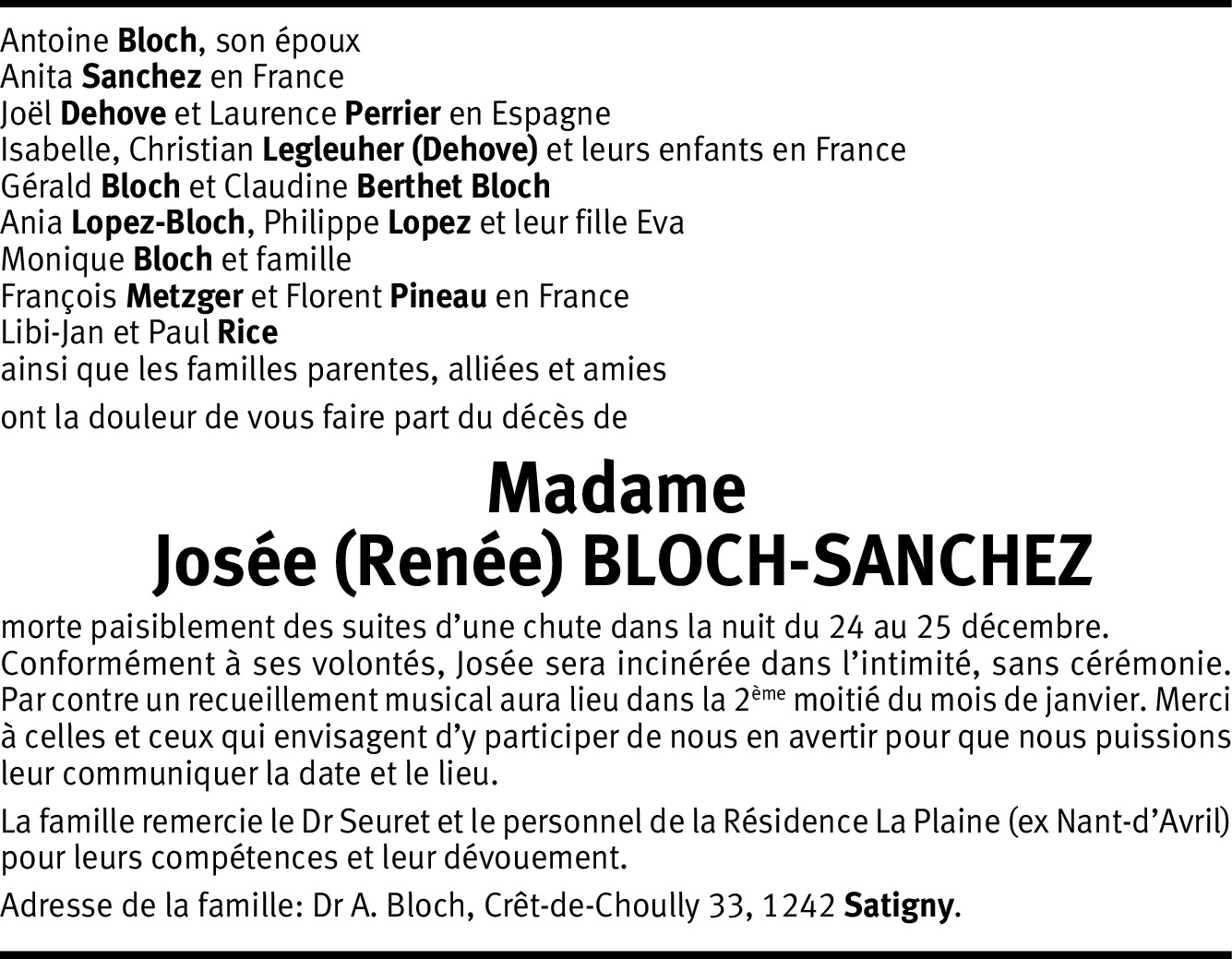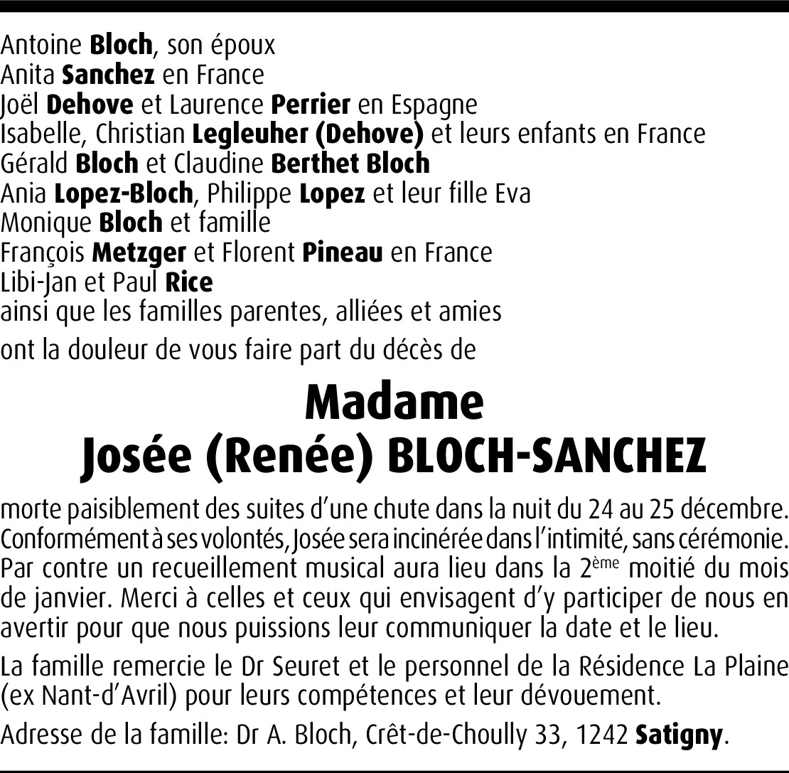 Josée (Renée) Bloch-Sanchez