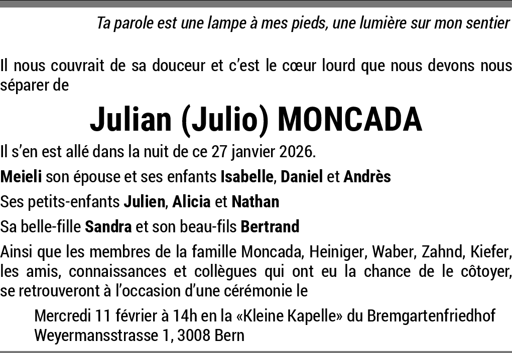 28.01.2026 Signaler Mes pensées les plus sincères. Je suis de tout coeur avec vous Isabelle Dupertuis De la part de Isabelle Dupertuis-Wuelser
