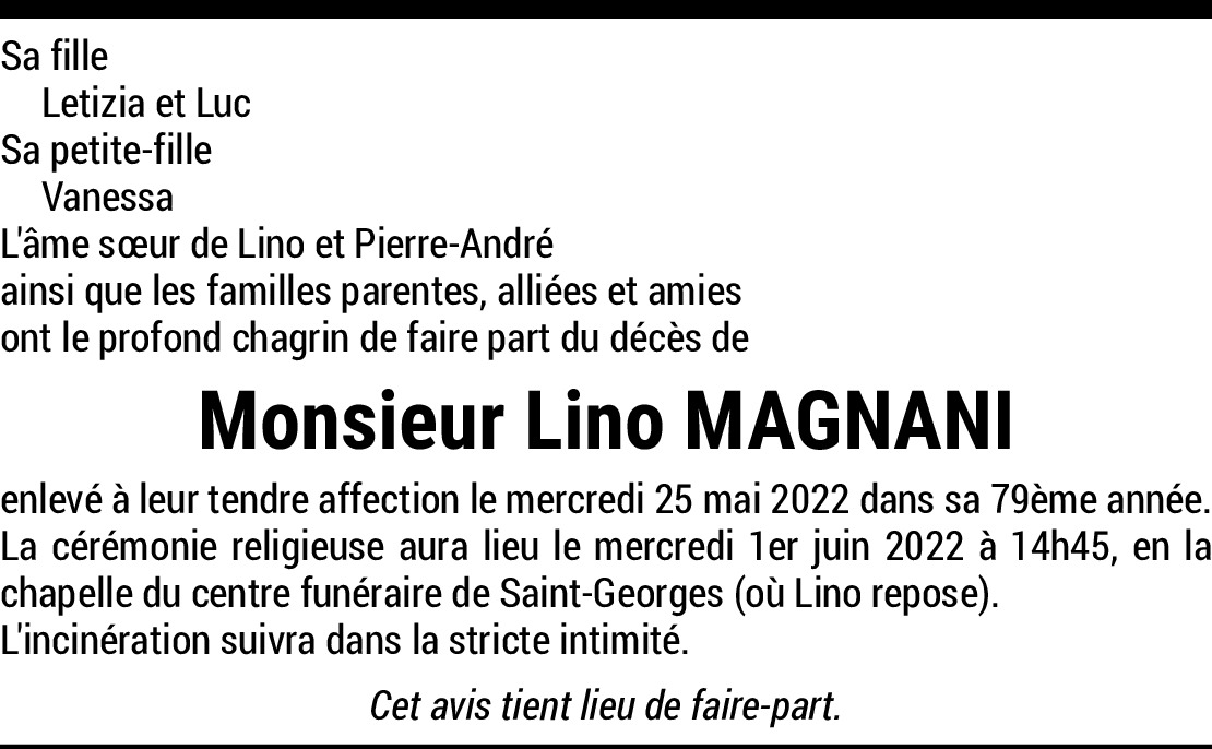 28.05.2022 Report Toutes mes pensées à ta famille, cher Lino. Repose en paix. Une ancienne collègue de la belle époque de Swissair. Marianne De la part de Ramsperger