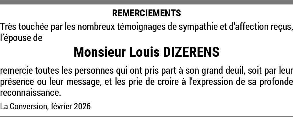 Repose en paix 13.02.2026 Signaler Chère Margrit et famille, c'est avec beaucoup d'émotion que nous avons appris le décès de Louis. Les merveilleux moments passés ensemble resteront à jamais gravés dans nos mémoires. Avec nos sincères condoléances. Anne et Claude Rappaz De la part de Claude Rappaz