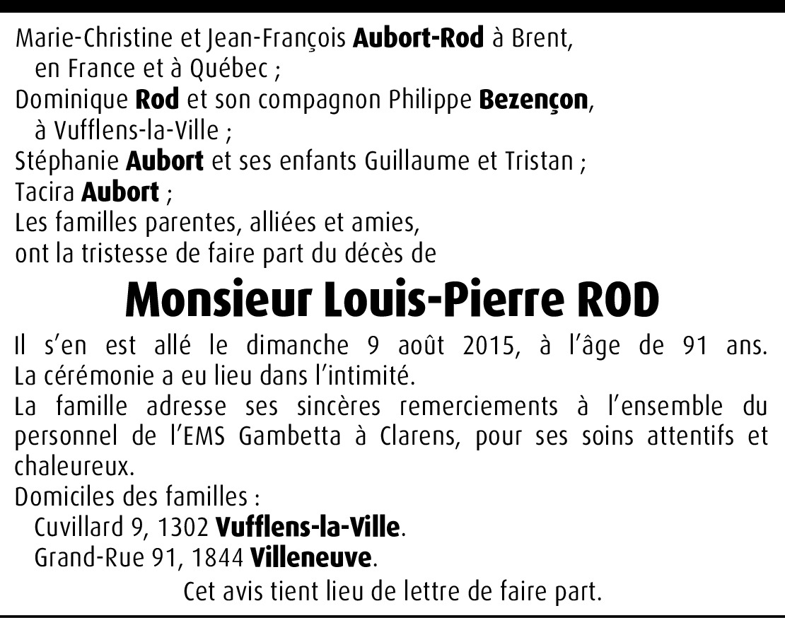 Il y a plus de 4 ans Signaler Chère famille, c'est avec tristesse que nous avons appris la nouvelle, nous sommes en pensées avec vous et nous vous présentons nos sincères condoléances. De la part de Jean-François Chappuis
