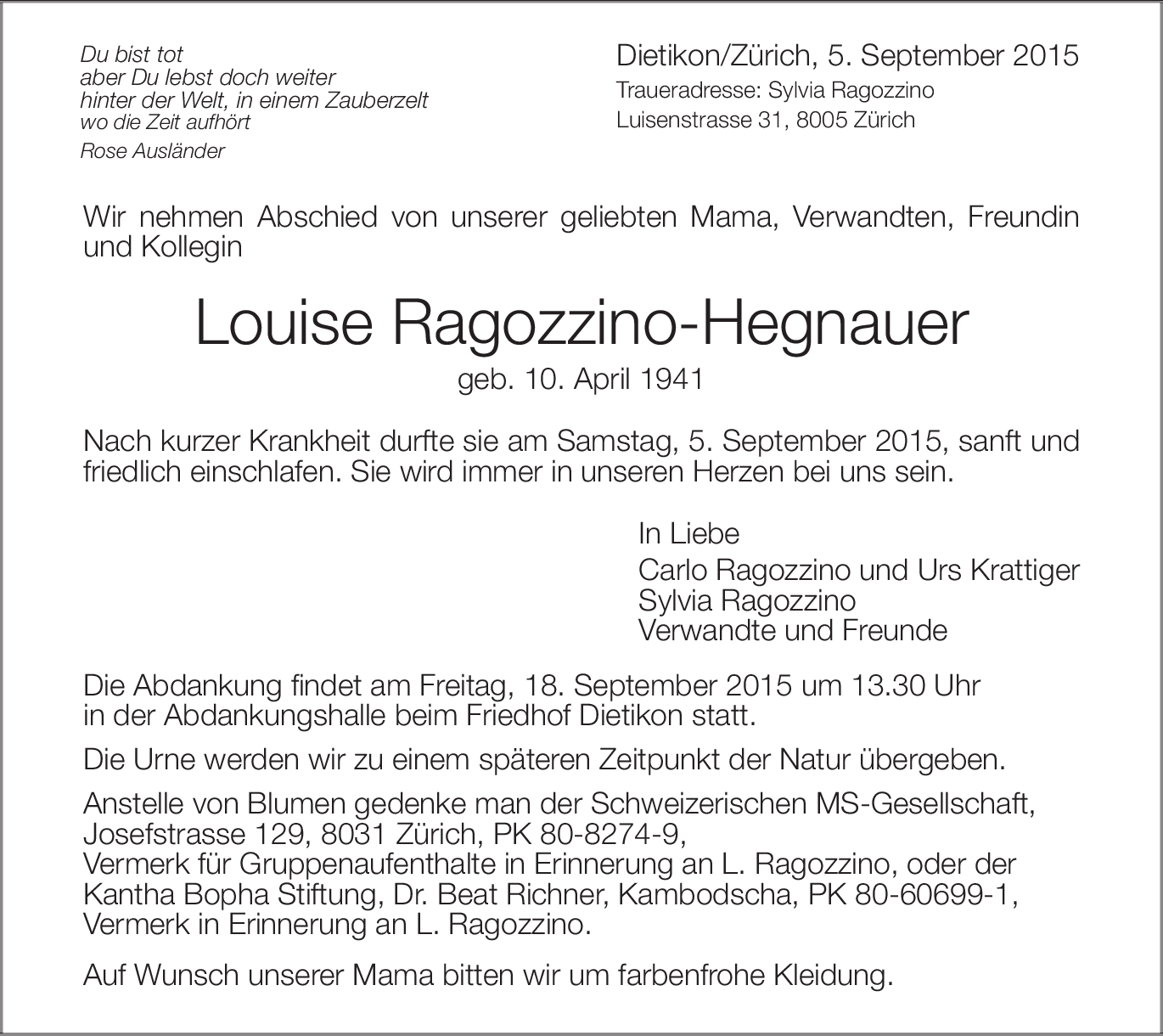 Louise Ragozzino-Hegnauer