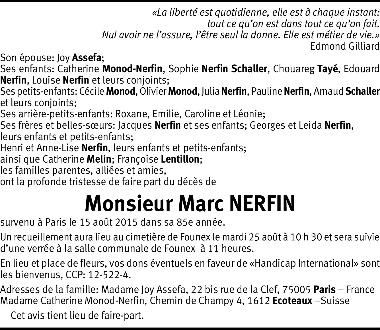 Il y a plus de 4 ans Signaler My sincere condolences to all the family. Fond farewell to Marc, Penny Hopkins De la part de Penny Hopkins Zegers
