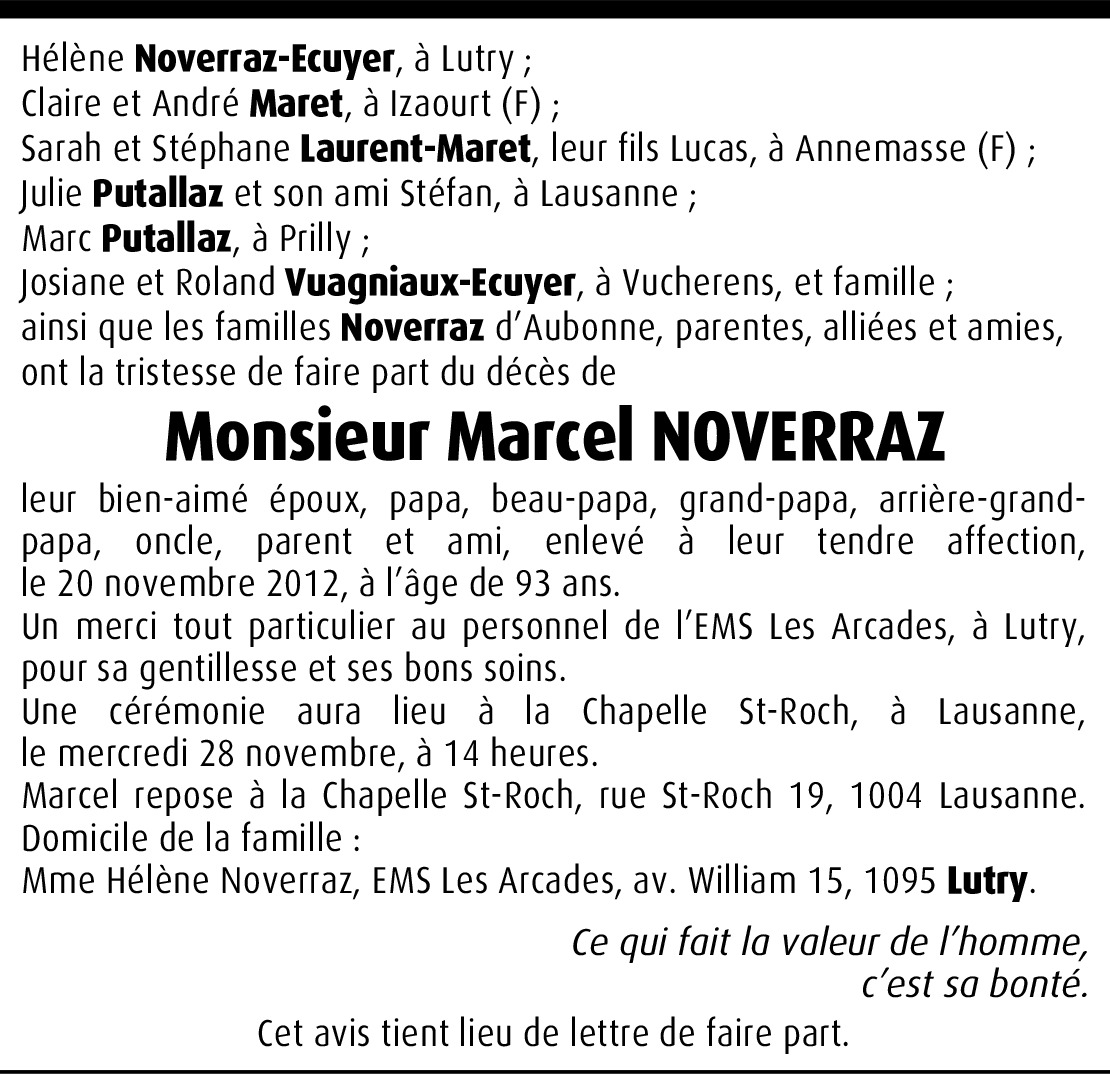 Il y a plus de 4 ans Signaler Cher Papi, je te remercie pour ta gentillesse et les beaux souvenirs des moments passés en ta compagnie. Repose en paix auprès de ceux que tu as tant aimés. Julie De la part de Julie Putallaz