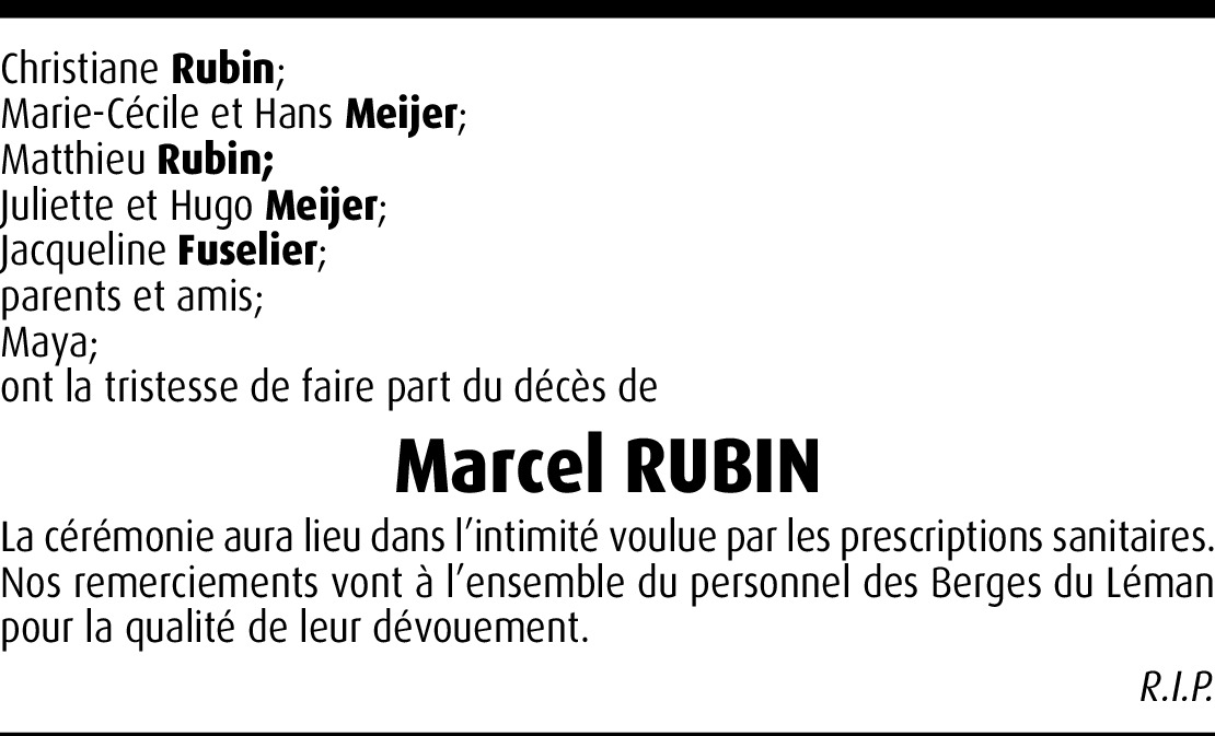 Monsieur Rubin s’en est allé tout droit au Paradis. A n’en pas douter...