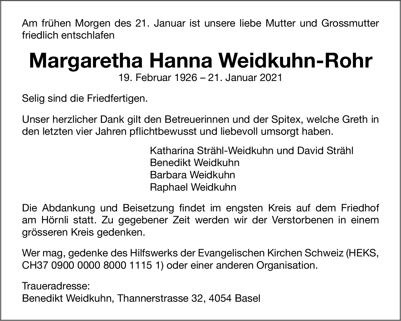 Margaretha Hanna Weidkuhn-Rohr