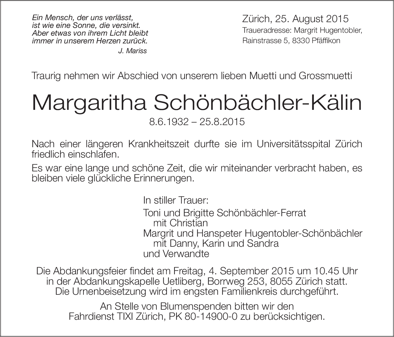 Margaritha Schönbächler-Kälin