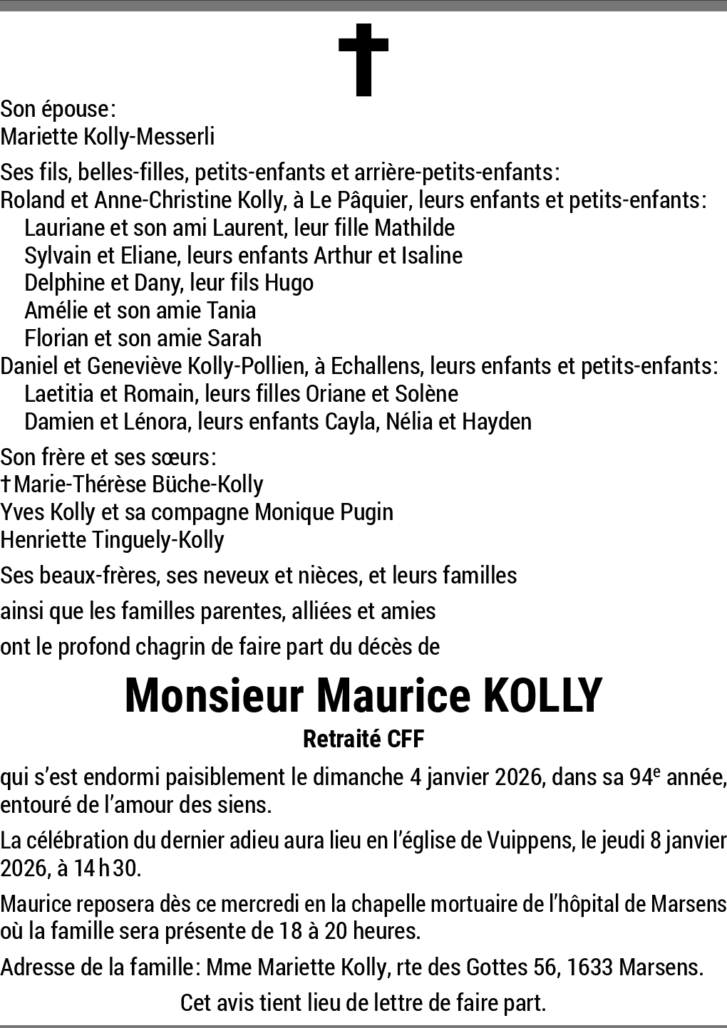Bons souvenirs 06.01.2026 Signaler Très bons souvenirs de cette très gentille personne De cœur avec son épouse et la famille De la part de Daniel Bourqui Lausanne