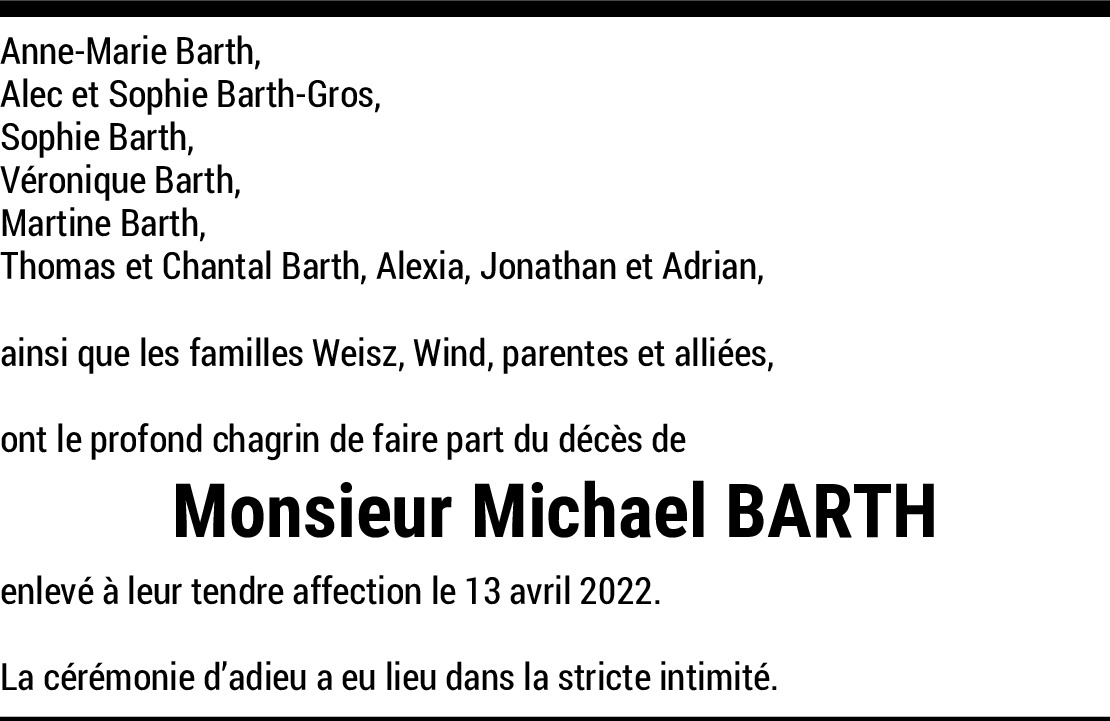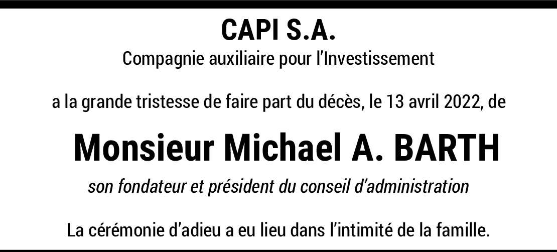 J'ai eu la chance de travailler pour Monsieur Barth chez Capi SA de mars 1983 à août 1984 et j'ai plein de bons souvenirs de cette période et de sa personnalité. Mes pensées vont à sa famille et plus particulièrement son épouse.