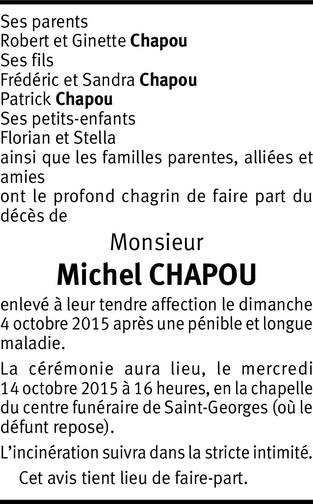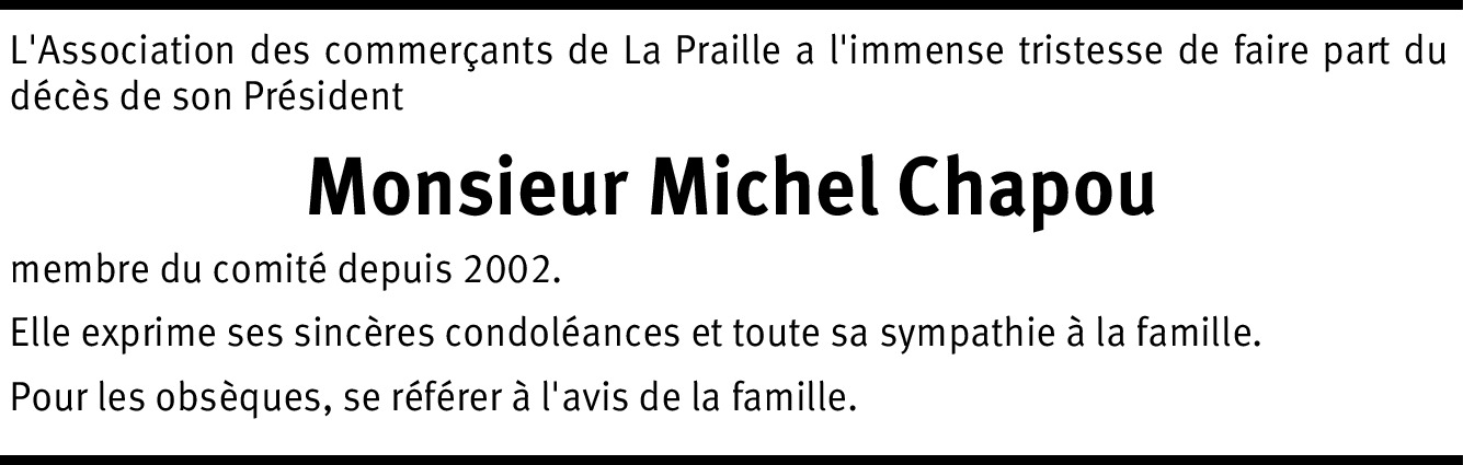 En cherchant à vous contacter, j'apprends avec grande tristesse que vous êtes parti sans que je puisse vous dire au revoir, mon maître, mon patron que vous avez été, cela me peine énormément... Toutes mes condoléances à sa famille. RIP monsieur Chaloupe?