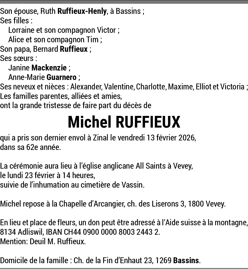 Michel a rejoint l'immensité du ciel qu'il aimait tant parcourir. En ces moments douloureux, nous gardons en mémoire l'image d'un homme libre, porté par les vents et la beauté de nos montagnes. Que son dernier envol soit paisible. Nos pensées vous accompagnent.