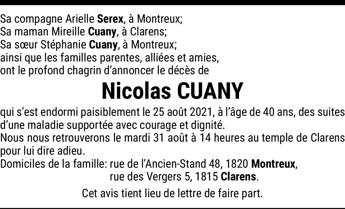Le départ d’un enfant, d’un compagnon, d’un frère, d’un ami est une page du Grand Livre de la vie qui se tourne.
