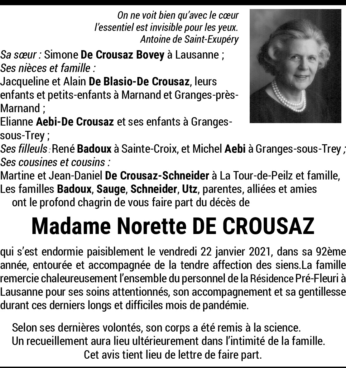 Il y a plus de 4 ans Report Appréciée, forte personnalité, Mme Masset. Sincères condoléances. De la part de Bernard Prince